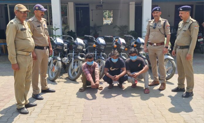 हरिद्वार। दुपहिया वाहन चोरी मामलों को खुलासा करते हुए पुलिस ने तीन शातिर चोरों को गिरफ्तार कर लिया है। जिनकी निशानदेही पर चुराये गये 6 दुपहिया वाहन भी बरामद किये गये है।